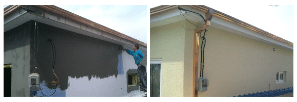 ¿ÜÀåÀç·Î »ç¿ëµÇ´Â µå¶óÀ̺ñÆ®´Â ½Ã¸àÆ®ÆäÀ̽ºÆ®(Á¢ÂøÁ¦)·Î ¿Üº®¸é¿¡ ´Ü¿À縦 ºÙÀ̰í, ±× À§¿¡ À¯±â ÈÇÐ °è¿ÀÇ ¸Å½¬¸¦ µÎ¸£°í ½Ã¸àÆ®ÆäÀ̽ºÆ®¸¦ °ãÃÄ ¹Ù¸£´Â °øÁ¤À» µÎ ¹ø ¹Ýº¹ÇØ ¼·Î ÀÏüȽÃŲ µ¿½Ã¿¡ ¿ÜºÎ·ÎºÎÅÍÀÇ Ãæ°ÝÀ» Èí¼öÇÒ ¼ö ÀÖµµ·Ï ÇÑ ÈÄ ¹«´ÌÄÚÆ®·Î ¸¶°¨ÇÏ´Â °ÍÀ¸·Î, Àú·ÅÇÏ°í ºü¸£°Ô ½Ã°øÇÒ ¼ö ÀÖ¾î ¼¹Îµé¿¡°Ô´Â ´õ¾øÀÌ ÁÁÀº ¿ÜÀåÀç¶ó°í ÇÒ ¼ö ÀÖ´Ù.